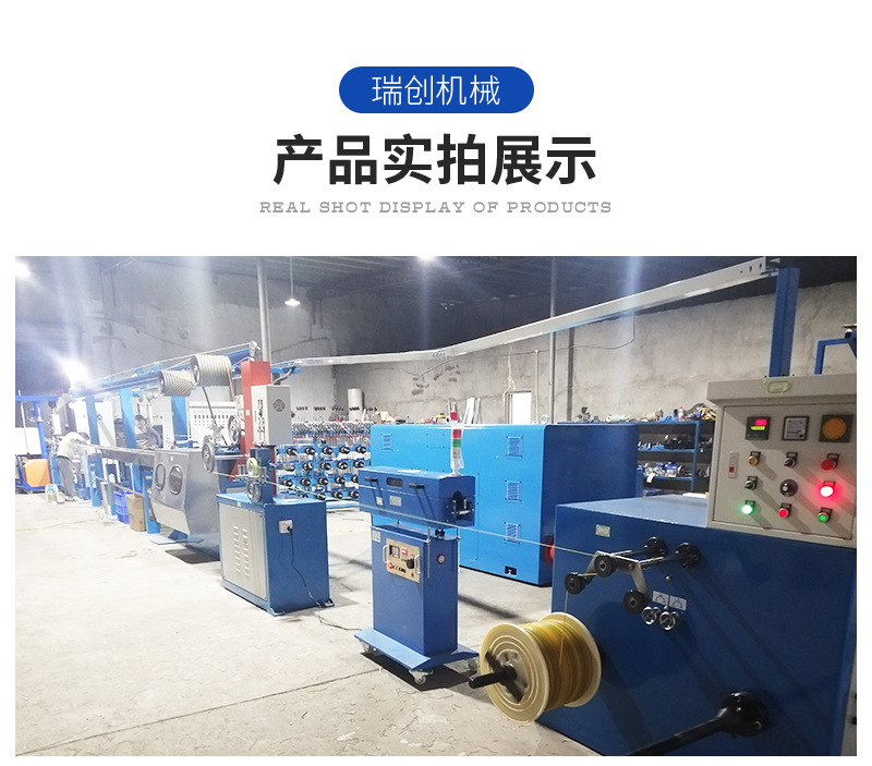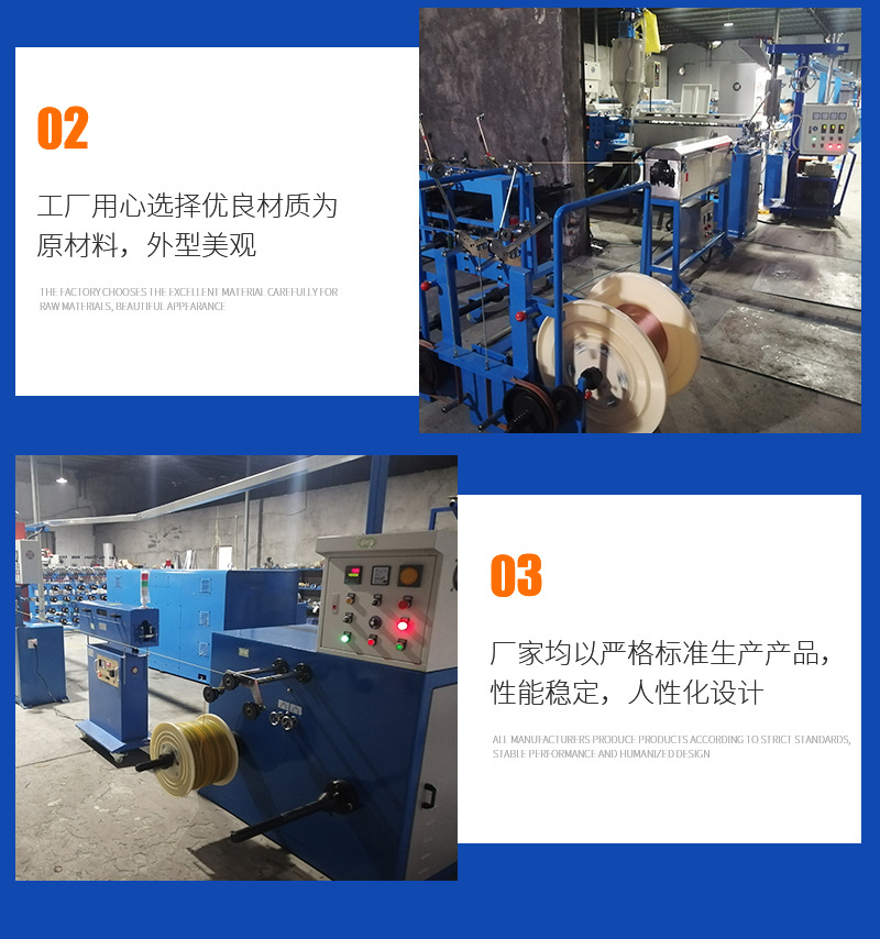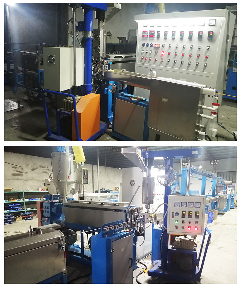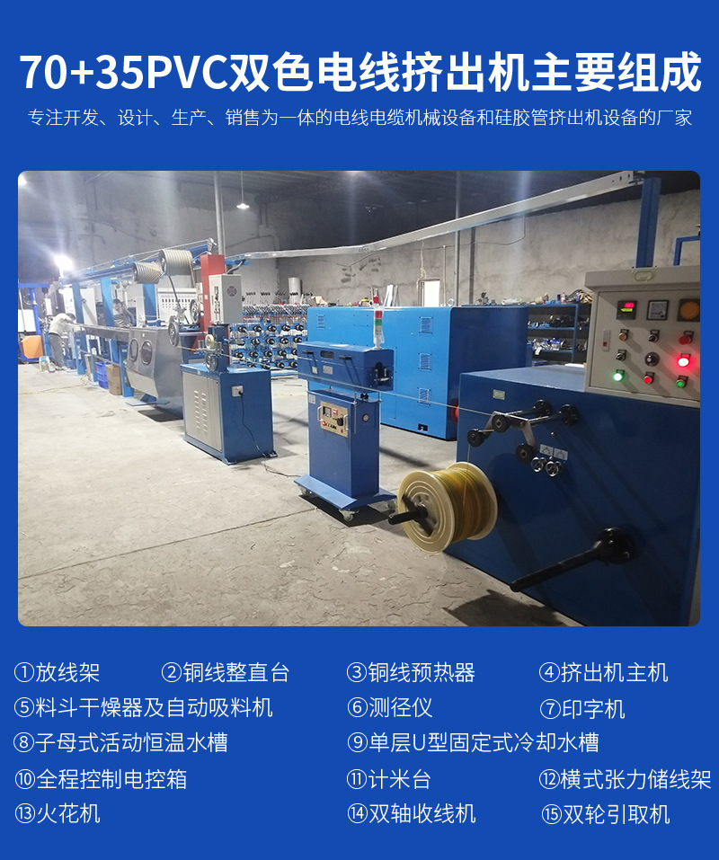 放线架------铜线整直台------铜线预热器------70挤出机主机------料斗干燥器及自动吸料机-----测径仪------
