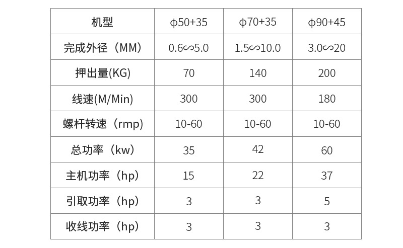 | 机型 参数 | φ50+35 | φ70+35 | φ90+45 | |